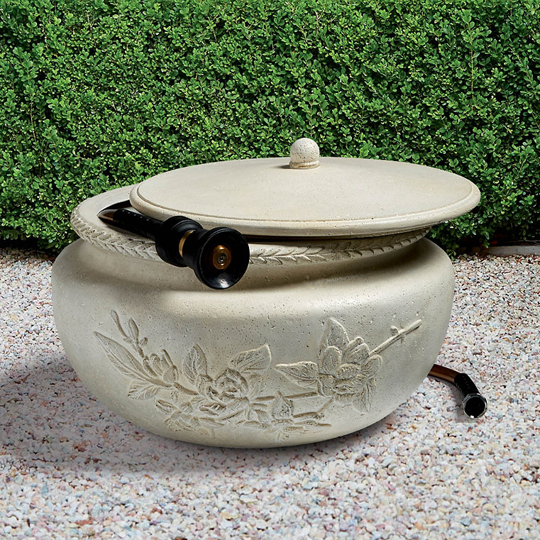With a durable design, this hose reel is built to last and look great on any patio or landscape. Then poke holes in the plastic foam with an awl to hold shafted bits, and slice crevices with a utility knife to hold cutoff discs. Hose hideaway is an attractive solution to garden hose storage. For a smaller patio that's in need of extra storage, a storage bench can work wonders for your space. Hose hideaway is an attractive solution to garden hose storage.